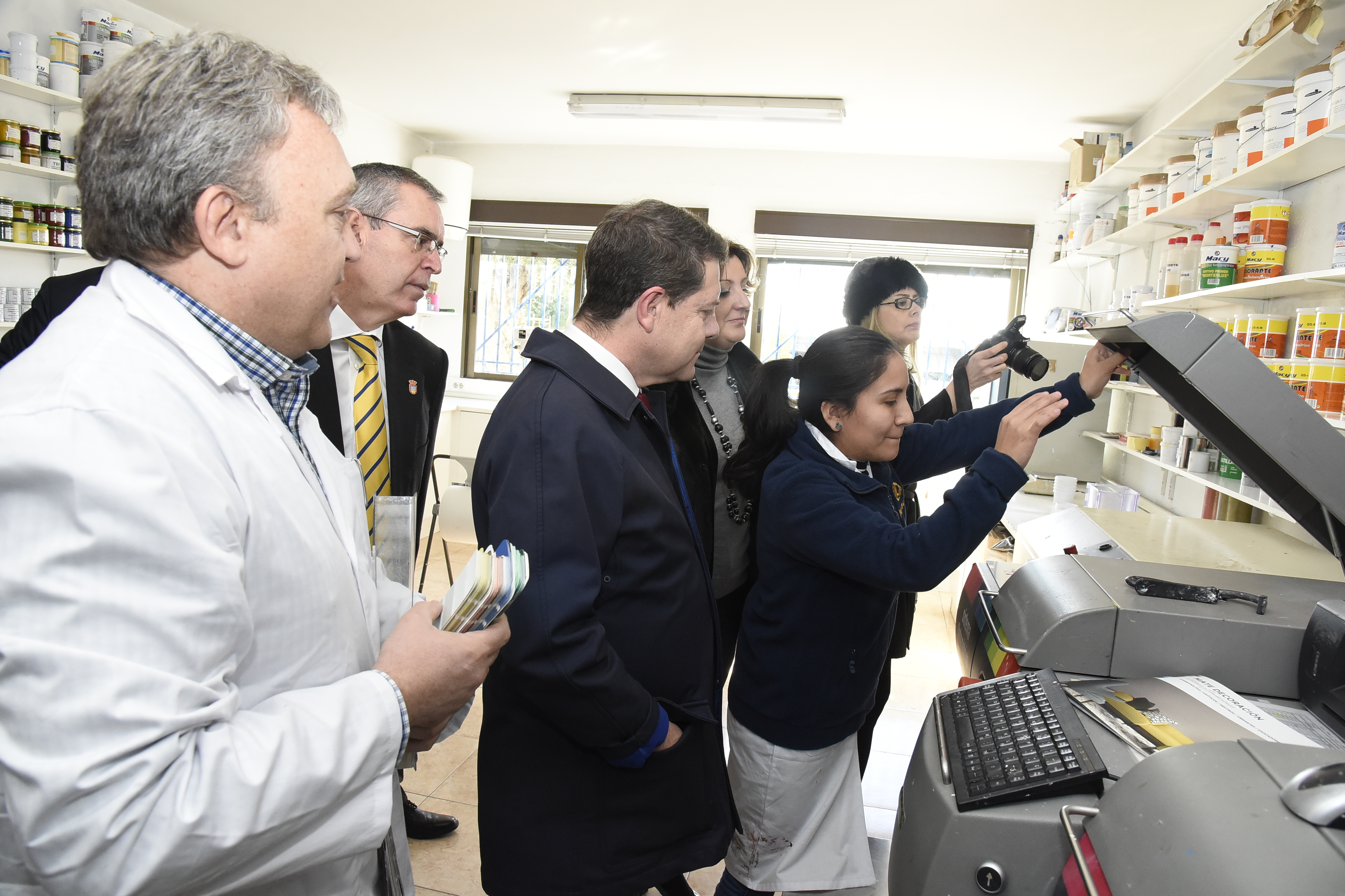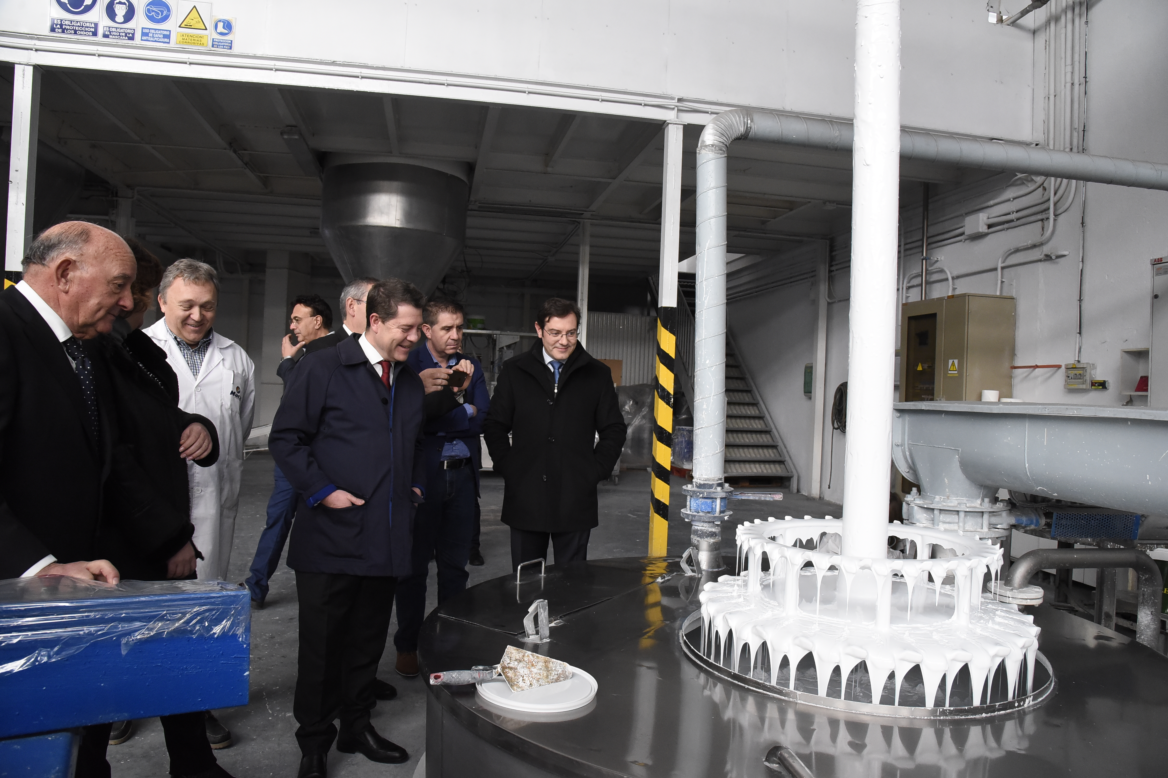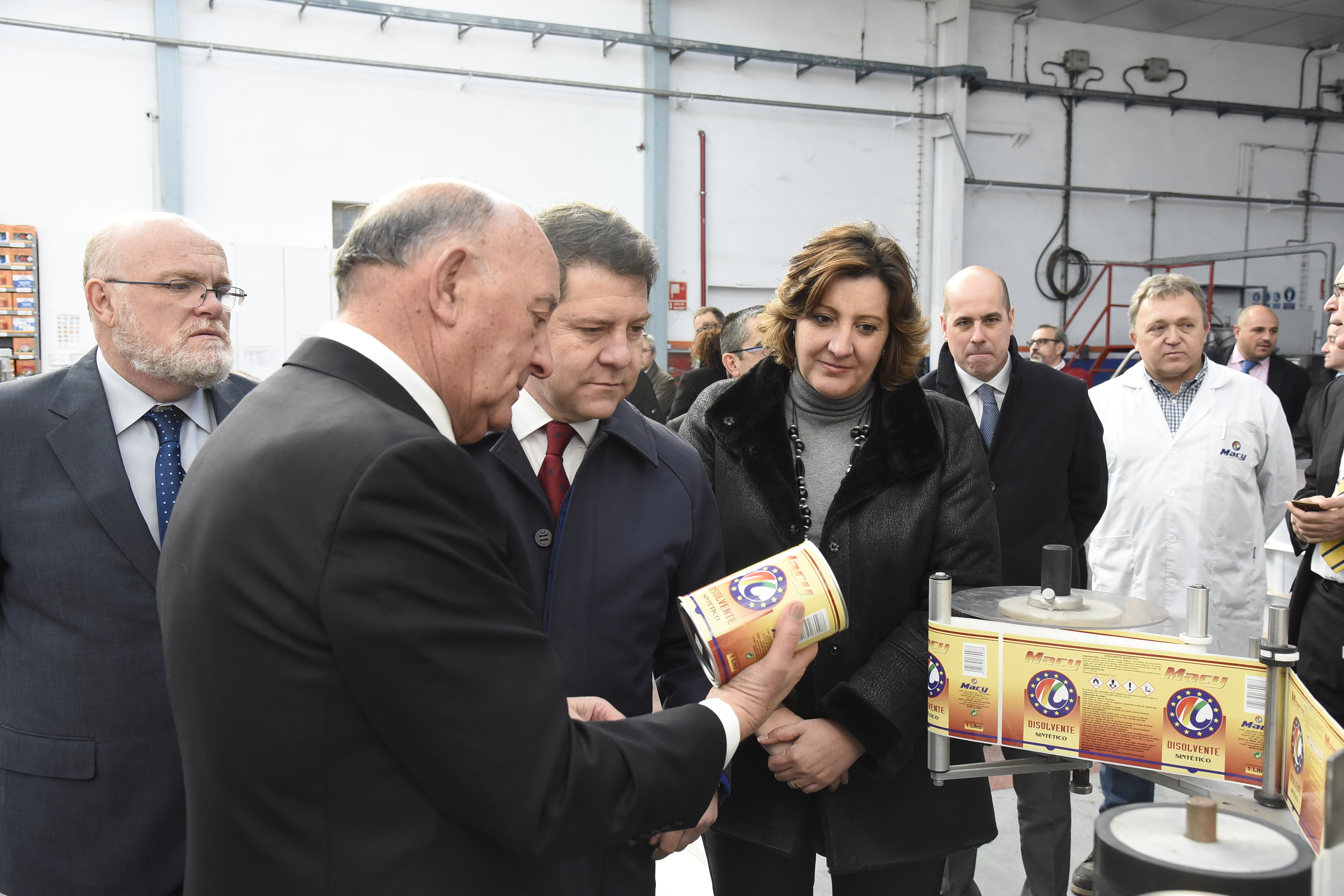 Accompagné du fondateur de la société M. Ángel Cantos, et de son Directeur Général, M. Carlos Cantos, le Président de la Région de Castilla-La Mancha, M. Emiliano García-Page, a rendu visite, aux installations de Pinturas Macy à La Roda (Albacete) avec Mme. Franco, Conseillère Régionale aux affaires Economiques, Entreprises & Emploi et d’autres autorités locales et régionales.